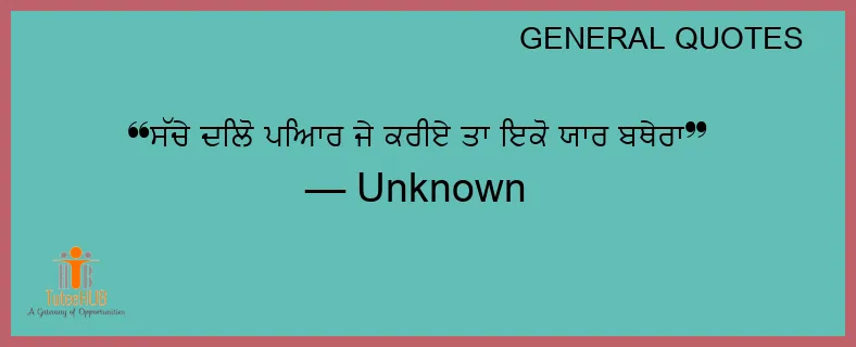 ਸੱਚੇ ਦਿਲੋ ਪਿਆਰ ਜੇ ਕਰੀਏ ਤਾ ਇਕੋ ਯਾਰ ਬਥੇਰਾ