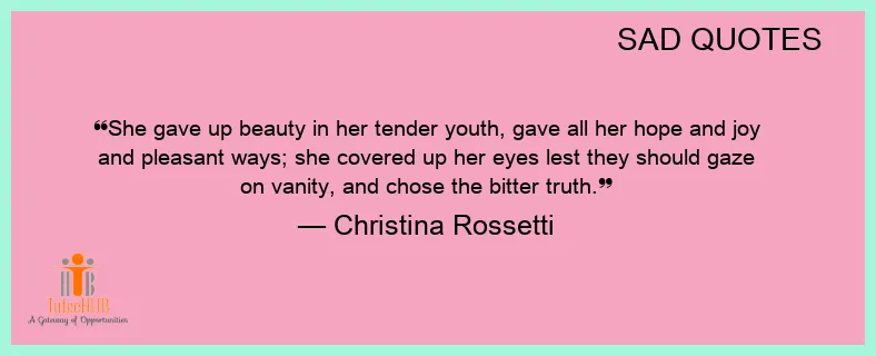 She gave up beauty in her tender youth, gave all her HOPE and joy and pleasant WAYS; she COVERED up her eyes lest they should gaze on VANITY, and chose the BITTER truth.
