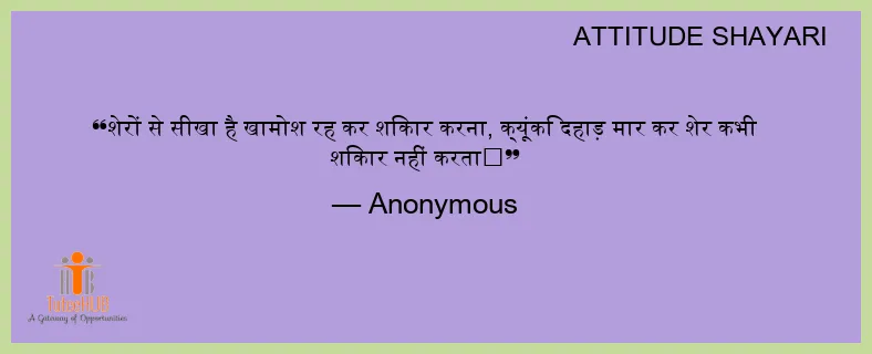 शेरों से सीखा है खामोश रह कर शिकार करना, क्यूंकि दहाड़ मार कर शेर कभी शिकार नहीं करता😏
