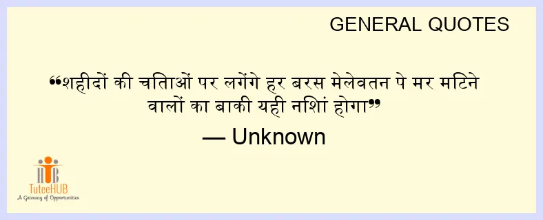 शहीदों की चिताओं पर लगेंगे हर बरस मेलेवतन पे मर मिटने वालों का बाकी यही निशां होगा