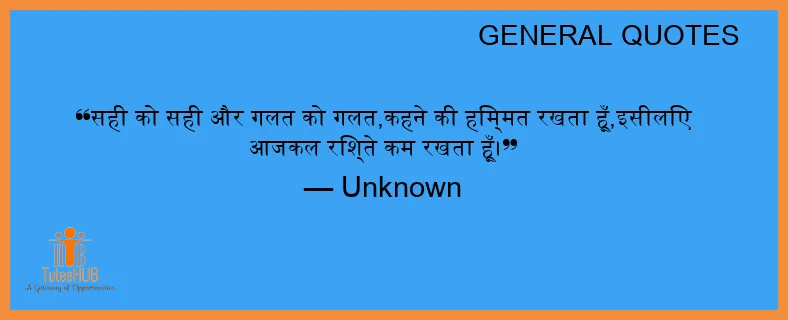 सही को सही और गलत को गलत,कहने की हिम्मत रखता हूँ,इसीलिए आजकल रिश्ते कम रखता हूँ।