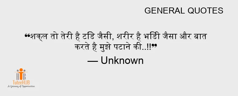 शक्ल तो तेरी है टिंडे जैसी, शरीर है भिंडी जैसा और बात करते है मुझे पटाने की..!!