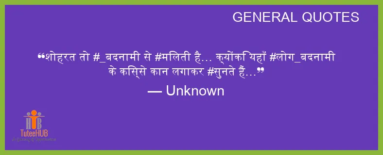 शोहरत तो #_बदनामी से #मिलती है… क्योंकि यहाँ #लोग_बदनामी के किस्से कान लगाकर #सुनते हैं…