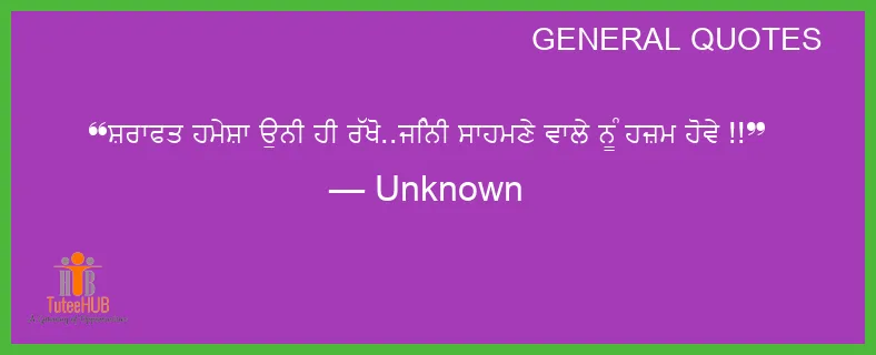 ਸ਼ਰਾਫਤ ਹਮੇਸ਼ਾ ਉਨੀ ਹੀ ਰੱਖੋ..ਜਿੰਨੀ ਸਾਹਮਣੇ ਵਾਲੇ ਨੂੰ ਹਜ਼ਮ ਹੋਵੇ !!