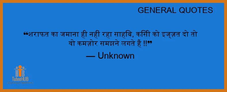 शराफत का जमाना ही नहीं रहा साहिब, किसी को इज्ज़त दो तो वो कमज़ोर समझने लगते हैं !!