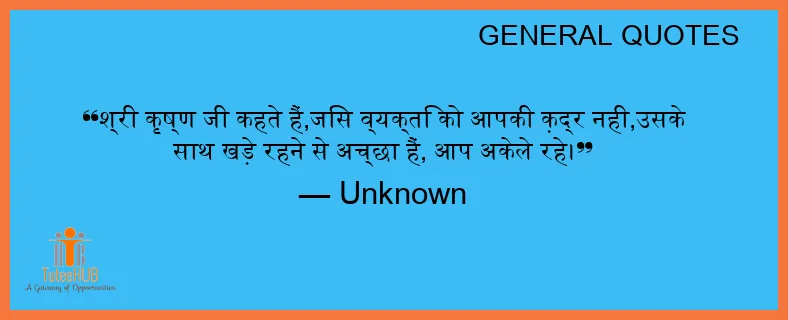 श्री कृष्ण जी कहते हैं,जिस व्यक्ति को आपकी क़द्र नही,उसके साथ खड़े रहने से अच्छा हैं, आप अकेले रहे।