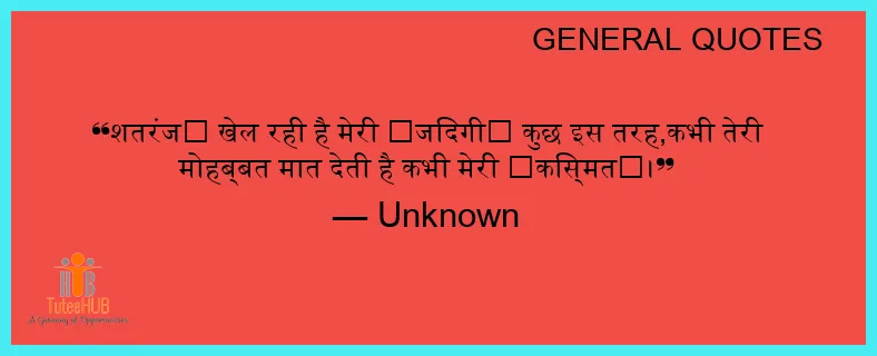 शतरंज‬ खेल रही है मेरी ‪जिंदगी‬ कुछ इस तरह,कभी तेरी मोहब्बत मात देती है कभी मेरी ‪किस्मत‬।