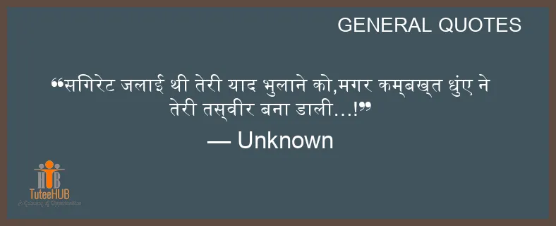 सिगरेट जलाई थी तेरी याद भुलाने को,मगर कम्बख्त धुंए ने तेरी तस्वीर बना डाली…!