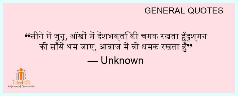 सीने में ज़ुनू, ऑखों में देंशभक्ति की चमक रखता हुँदुश्मन की साँसें थम जाए, आवाज में वो धमक रखता हुँ