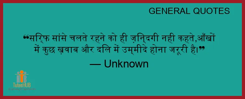 सिर्फ सांसे चलते रहने को ही ज़िन्दगी नही कहते,आँखों में कुछ ख़वाब और दिल में उम्मीदे होना जरूरी है।
