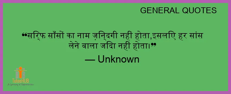 सिर्फ साँसों का नाम ज़िन्दगी नहीं होता,इसलिए हर सांस लेने वाला जिंदा नहीं होता।