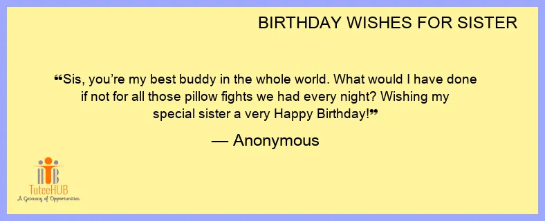Sis, you’re my best buddy in the whole world. What would I have done if not for all those pillow fights we had every night? Wishing my special sister a very Happy Birthday!