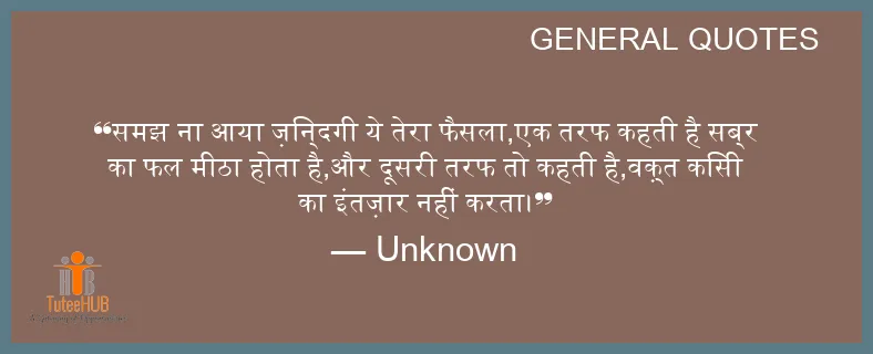 समझ ना आया ज़िन्दगी ये तेरा फैसला,एक तरफ कहती है सब्र का फल मीठा होता है,और दूसरी तरफ तो कहती है,वक़्त किसी का इंतज़ार नहीं करता।