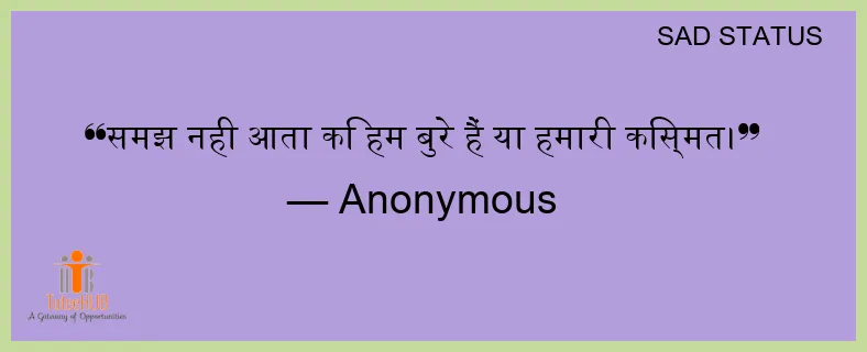 समझ नही आता कि हम बुरे हैं या हमारी किस्मत।
