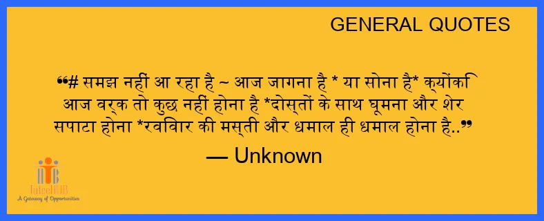 # समझ नहीं आ रहा है ~ आज जागना है * या सोना है* क्योंकि आज वर्क तो कुछ नहीं होना है *दोस्तों के साथ घूमना और शेर सपाटा होना *रविवार की मस्ती और धमाल ही धमाल होना है..
