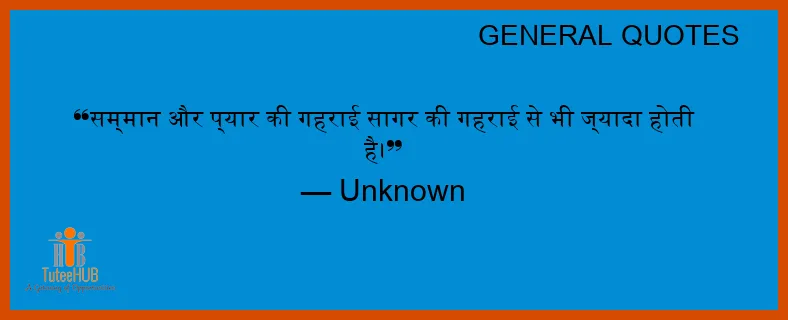सम्मान और प्यार की गहराई सागर की गहराई से भी ज्यादा होती है।