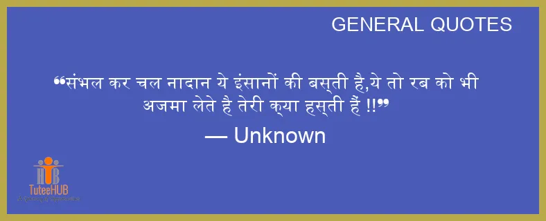 संभल कर चल नादान ये इंसानों की बस्ती है,ये तो रब को भी अजमा लेते है तेरी क्या हस्ती हैं !!
