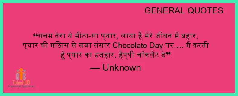 सनम तेरा ये मीठा-सा प्यार, लाया है मेरे जीवन में बहार, प्यार की मिठास से सजा संसार Chocolate Day पर…. मैं करती हूँ प्यार का इजहार. हैप्पी चॉकलेट डे