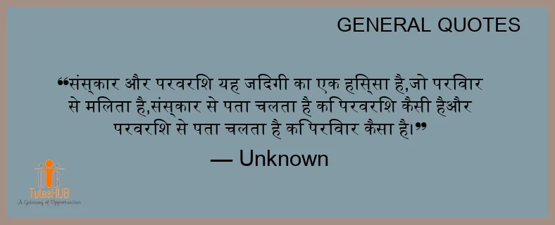संस्कार और परवरिश यह जिंदगी का एक हिस्सा है,जो परिवार से मिलता है,संस्कार से पता चलता है कि परवरिश कैसी हैऔर परवरिश से पता चलता है कि परिवार कैसा है।