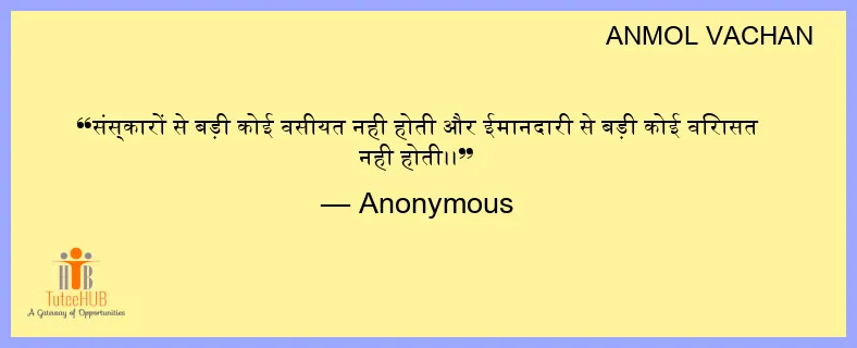 संस्कारों से बड़ी कोई वसीयत नही होती और ईमानदारी से बड़ी कोई विरासत नही होती।।