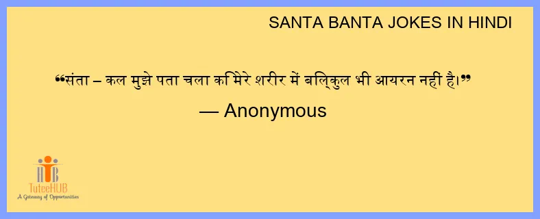 संता – कल मुझे पता चला कि मेरे शरीर में बिल्कुल भी आयरन नहीं है।
