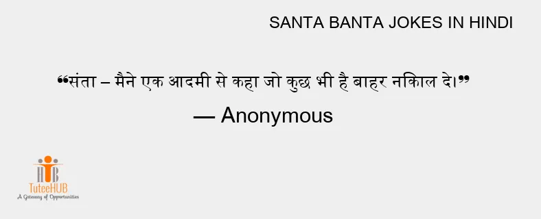 संता – मैने एक आदमी से कहा जो कुछ भी है बाहर निकाल दे।