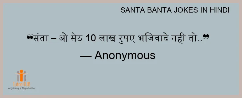 संता – ओ सेठ 10 लाख रुपए भिजवादे नही तो..