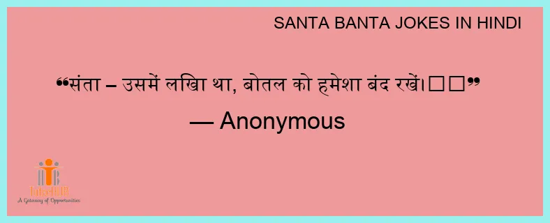 संता – उसमें लिखा था, बोतल को हमेशा बंद रखें।😝😝