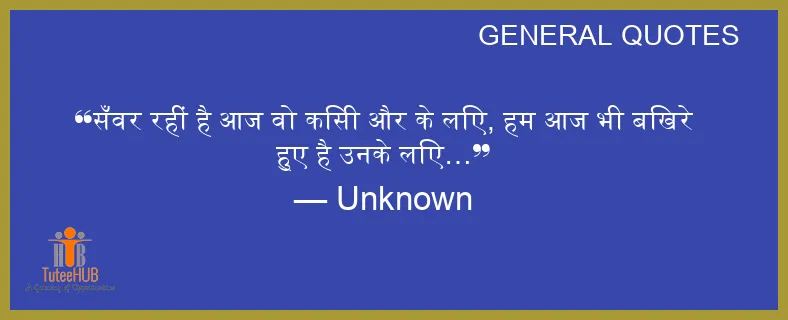 सँवर रहीं है आज वो किसी और के लिए, हम आज भी बिखरे हुए है उनके लिए…