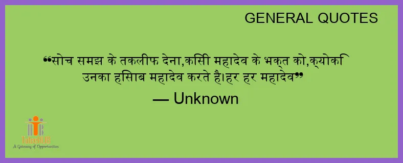 सोच समझ के तकलीफ देना,किसी महादेव के भक्त को,क्योकि उनका हिसाब महादेव करते है।हर हर महादेव