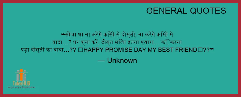 सोचा था ना करेंगे किसी से दोस्ती, ना करेंगे किसी से वादा…? पर क्या करें, दोस्त मिला इतना प्यारा… कि, करना पड़ा दोस्ती का वादा…?? ✋HAPPY PROMISE DAY MY BEST FRIEND✋??