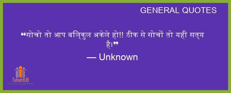सोचो तो आप बिल्कुल अकेले हो!! ठीक से सोचों तो यही सत्य है।