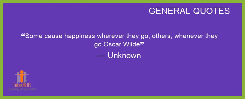 Some CAUSE happiness WHEREVER they GO; others, WHENEVER they go.Oscar Wilde