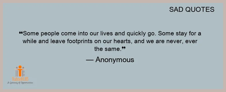 Some people come into our lives and quickly go. Some stay for a while and leave footprints on our hearts, and we are never, ever the same.