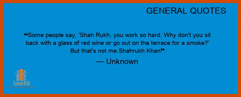 Some PEOPLE say, 'Shah Rukh, you work so HARD. Why don't you sit back with a GLASS of red WINE or go out on the TERRACE for a smoke?' But that's not me.Shahrukh Khan
