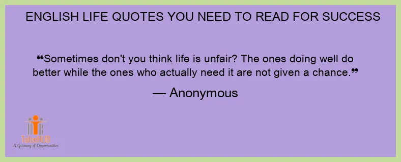 Sometimes don't you think life is unfair? The ones doing well do better while the ones who actually need it are not given a chance.
