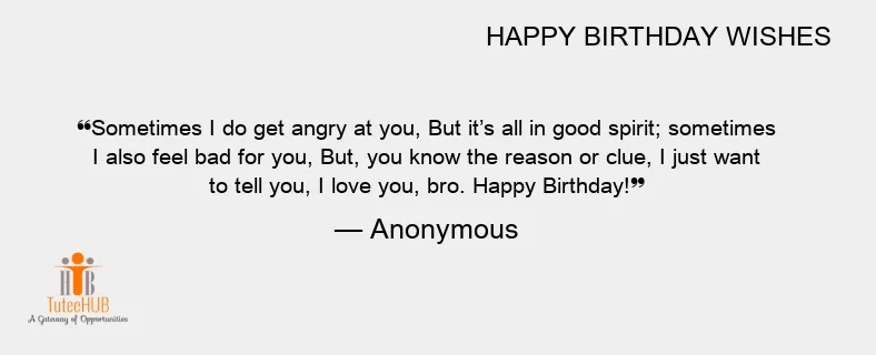 Sometimes I do get angry at you, But it’s all in good spirit; sometimes I also feel bad for you, But, you know the reason or clue, I just want to tell you, I love you, bro. Happy Birthday!