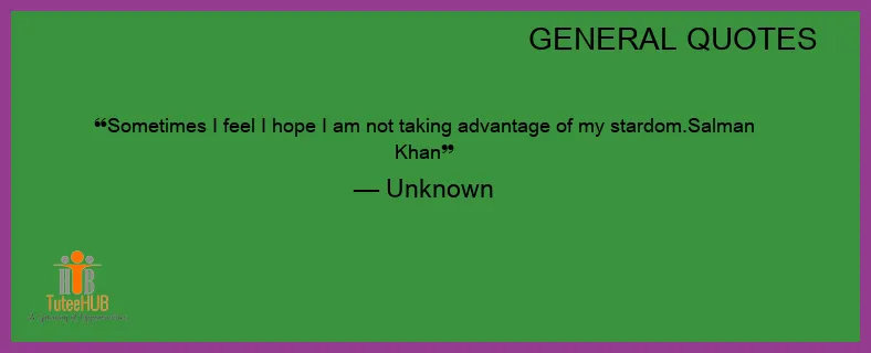 SOMETIMES I FEEL I HOPE I am not TAKING ADVANTAGE of my stardom.Salman Khan