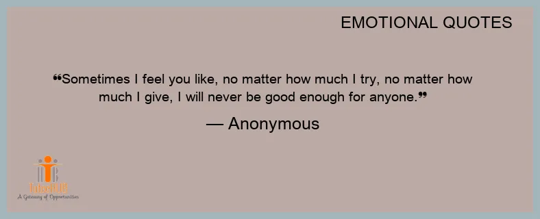 Sometimes I feel you like, no matter how much I try, no matter how much I give, I will never be good enough for anyone.