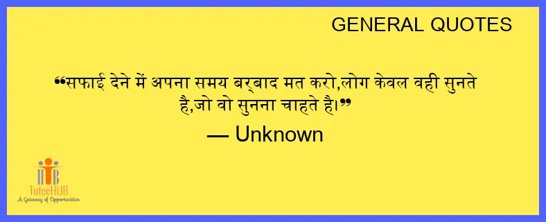 सफाई देने में अपना समय बर्बाद मत करो,लोग केवल वही सुनते है,जो वो सुनना चाहते है।