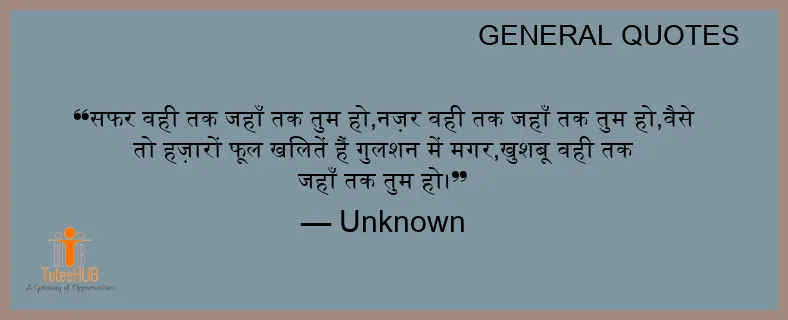 सफर वही तक जहाँ तक तुम हो,नज़र वही तक जहाँ तक तुम हो,वैसे तो हज़ारों फूल खिलतें हैं गुलशन में मगर,खुशबू वही तक जहाँ तक तुम हो।
