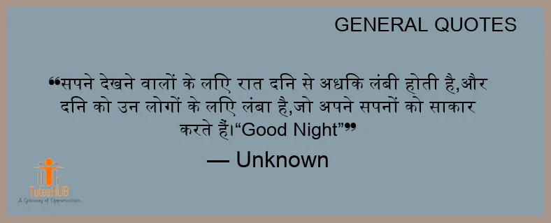 सपने देखने वालों के लिए रात दिन से अधिक लंबी होती है,और दिन को उन लोगों के लिए लंबा है,जो अपने सपनों को साकार करते हैं।“GOOD Night”