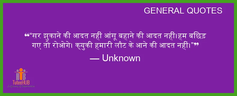 “सर झुकाने की आदत नहीं आंसू बहाने की आदत नहीं।हम बिछड़ गए तो रोओगे। क्युकी हमारी लौट के आने की आदत नहीं।”