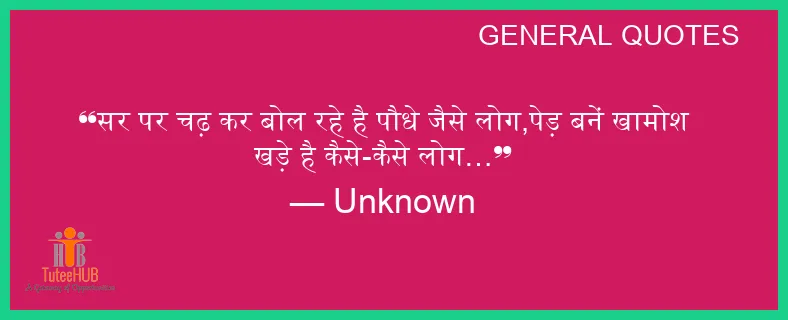 सर पर चढ़ कर बोल रहे है पौधे जैसे लोग,पेड़ बनें खामोश खड़े है कैसे-कैसे लोग…