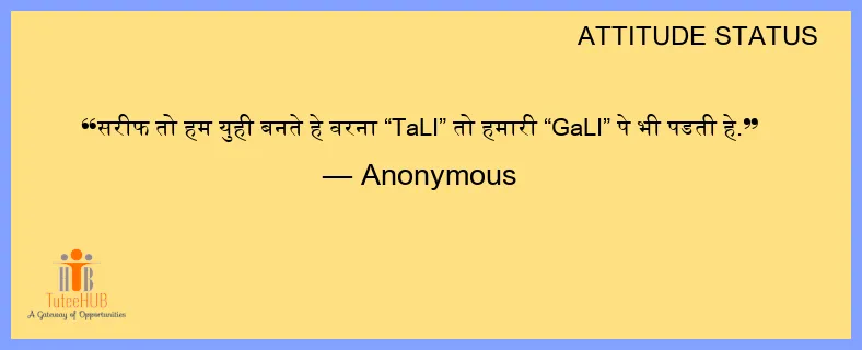 सरीफ तो हम युही बनते हे वरना “TaLI” तो हमारी “GaLI” पे भी पडती हे.