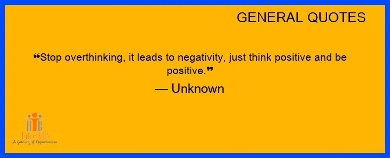 STOP OVERTHINKING, it leads to NEGATIVITY, just THINK positive and be positive.