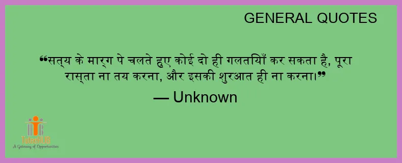 सत्य के मार्ग पे चलते हुए कोई दो ही गलतियाँ कर सकता है, पूरा रास्ता ना तय करना, और इसकी शुरआत ही ना करना।