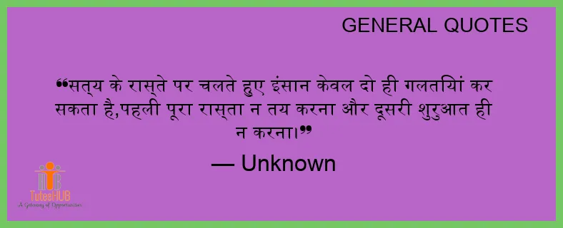 सत्य के रास्ते पर चलते हुए इंसान केवल दो ही गलतियां कर सकता है,पहली पूरा रास्ता न तय करना और दूसरी शुरुआत ही न करना।