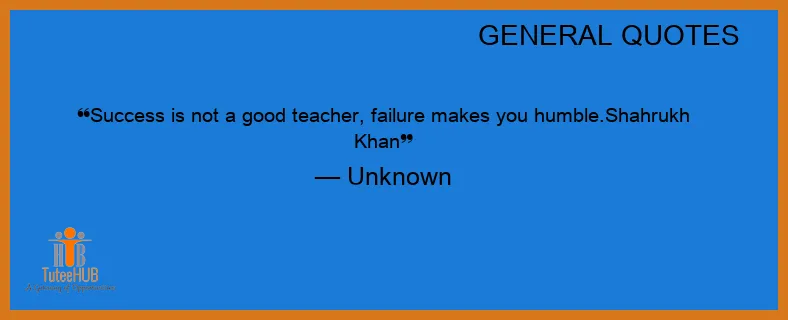 SUCCESS is not a GOOD TEACHER, FAILURE MAKES you humble.Shahrukh Khan