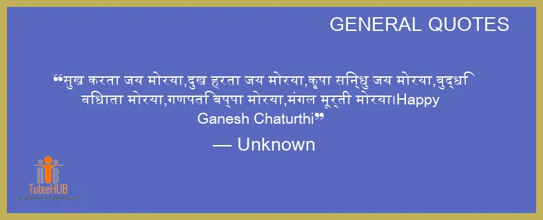 सुख करता जय मोरया,दुख हरता जय मोरया,कृपा सिन्धु जय मोरया,बुद्धि विधाता मोरया,गणपति बप्पा मोरया,मंगल मूर्ती मोरया।Happy GANESH Chaturthi